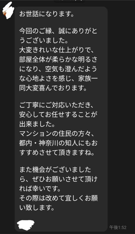 昨今ではLINEにてお礼を頂戴する事もございます。